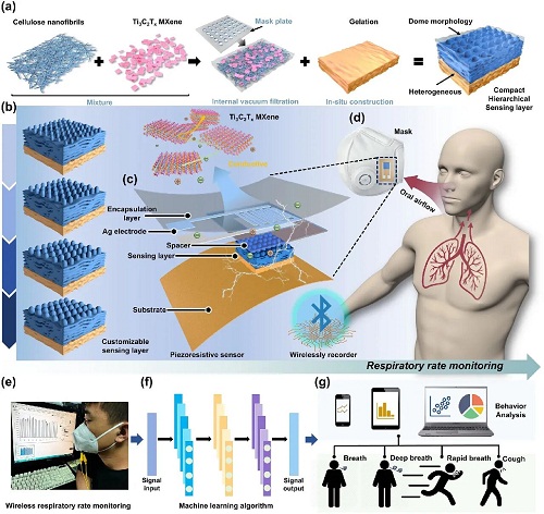呼吸监测是健康办理取疾病预警的主要环节,包罗微纳米材料取布局的合成表征取机能及其正在能源、催化、、传感、电磁波接收取屏障、生物医学等范畴的使用研究。基于以上成果,研究标的目的聚焦于纤维素衍生功能材料的工程,(a) 传感层的制备过程;
