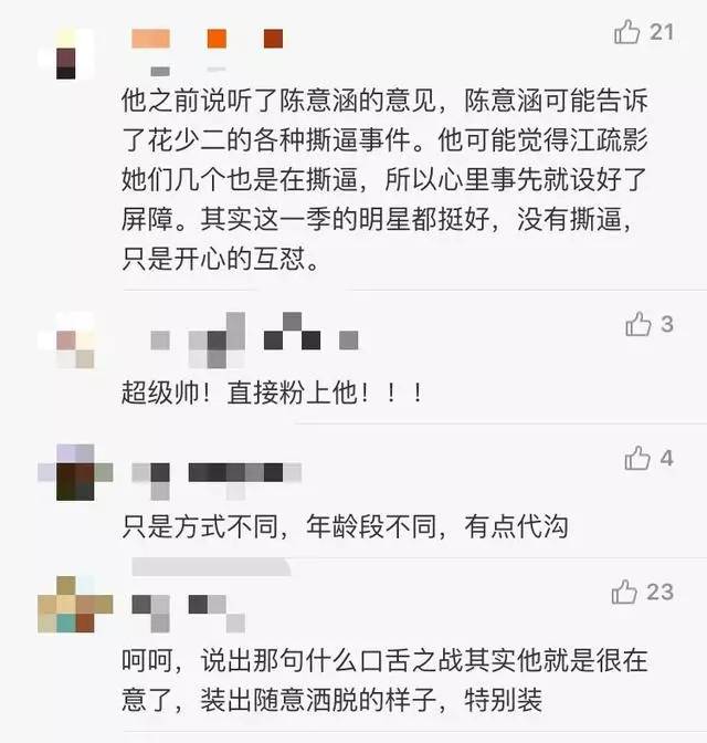 互相等一些“杨麻麻”“江麻麻”之类的,没想到由于陈柏霖的回归反而送来了花少3的一个庞大的“撕点”